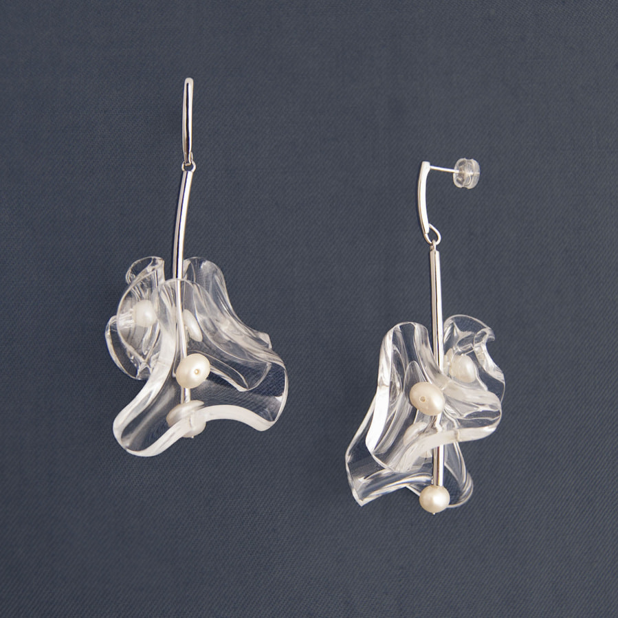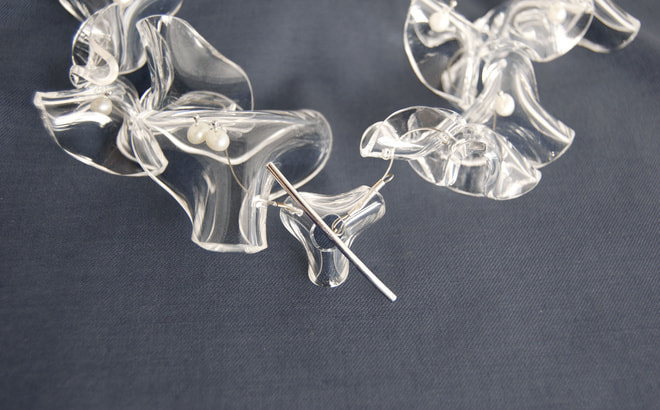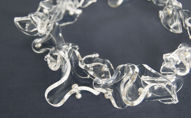 KS-1 Necklace 作家名 Kaoru Suwa購入金額 -レンタル パール付き ¥33,000 (税込)オーダー (可) / 45日 / ¥110,000 (税込)サイズ 外径 φ 200mm / 内径 φ130mm 長さ 550mm / 高さ35mm素材 アクリル、シルバー、淡水パール注意点 オーダー時、全長更新可能